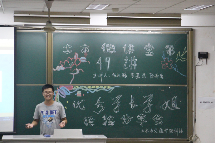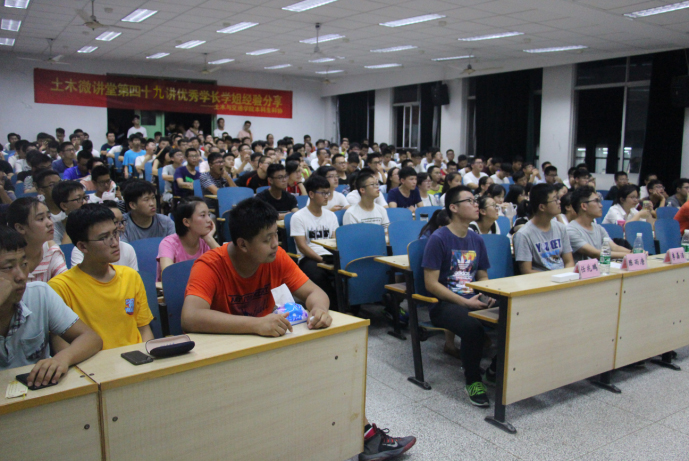 2017年9月8日18时30分,由土木与交通学院本科生科协承办的“土木微讲堂”第四十九讲开云电竞网江宁校区致用楼417顺利举办,本次微讲堂主题为“优秀学长学姐经验分享”。本次微讲堂邀请到了14级优秀本科生李嘉浩、任兆鹏,15级优秀本科生陈雨唐,为17级新生们分享经验,土木与交通学院全体17级新生到场聆听了此次讲座。