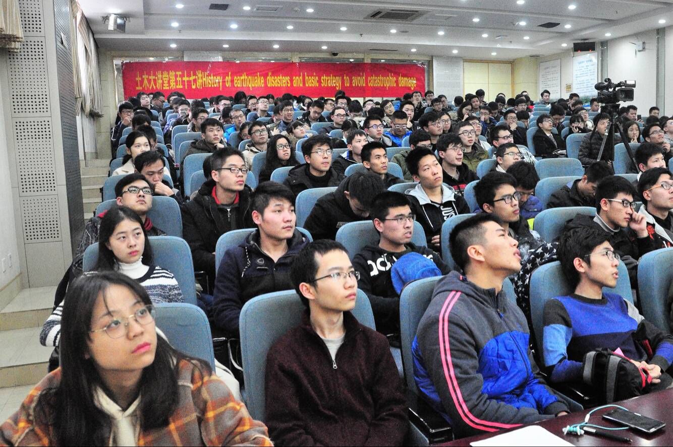 2017年12月4日下午,由土木与交通学院主办,学院本科生科协承办的土木大讲堂第五十七讲之“History of earthquake disasters and basic strategy to avoid catastrophic damage”在开云电竞网校本部闻天馆113室成功举办。本次活动为学院与中国岩石力学与工程学会环境岩土工程分会共建土木大讲堂的首次合作,第一次邀请外籍专家——日本东京大学东畑郁生(Ikuo Towhata)教授全程用英文为本科生做讲座。中国岩石力学与工程学会环境岩土工程分会秘书长陈育民教授主持了本次讲座,中国岩石力学与工程分会副会长徐文立女士应邀出席了本次讲座,2015级辅导员王璐老师、2014和2015级部分本科生聆听了本次讲座。