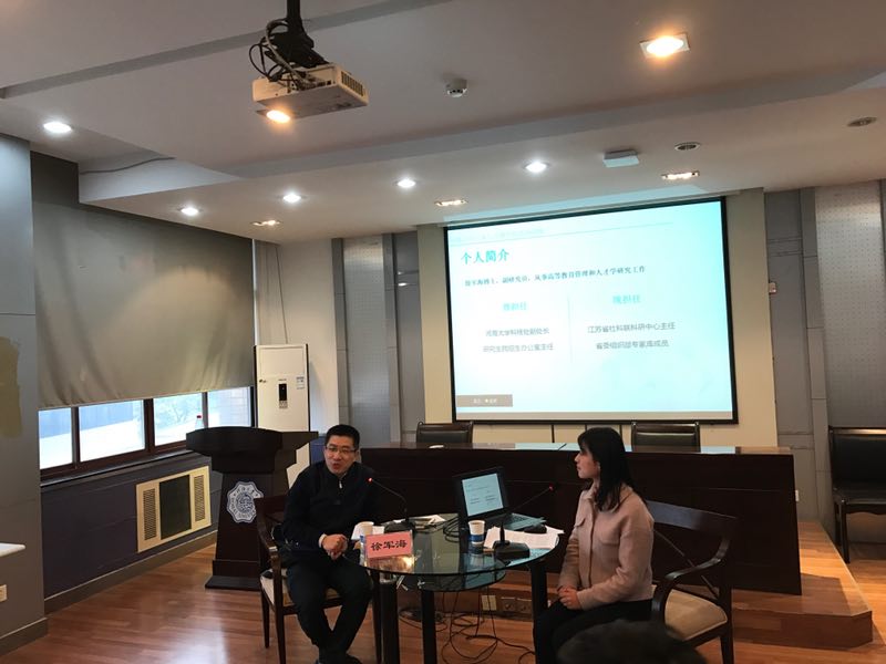 2017年12月28日下午4:00,由我院研究生科协主办的“非常近距离——与大咖面对面,畅谈梦想,感悟人生”访谈活动在科学馆516隆重举行。本期访谈嘉宾为江苏省社科联科研中心主任、省委组织部专家成员徐军海。