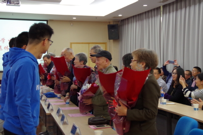 随后,2016级同学代表为到场的退休教师献上鲜花,表达对教师的崇高敬意,表达学校、学院对教师辛勤付出的衷心感谢。