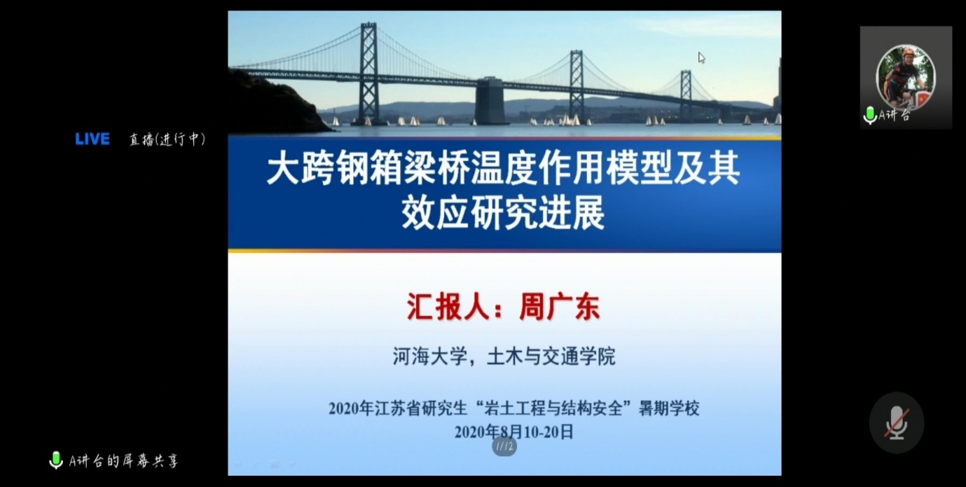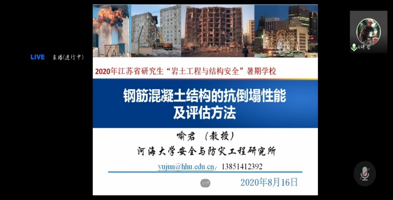 8月16日是2020年江苏省研究生“岩土工程与结构安全”暑期学校的第七天。今天的学术报告由开云电竞网土木与交通学院陈育民教授主持。