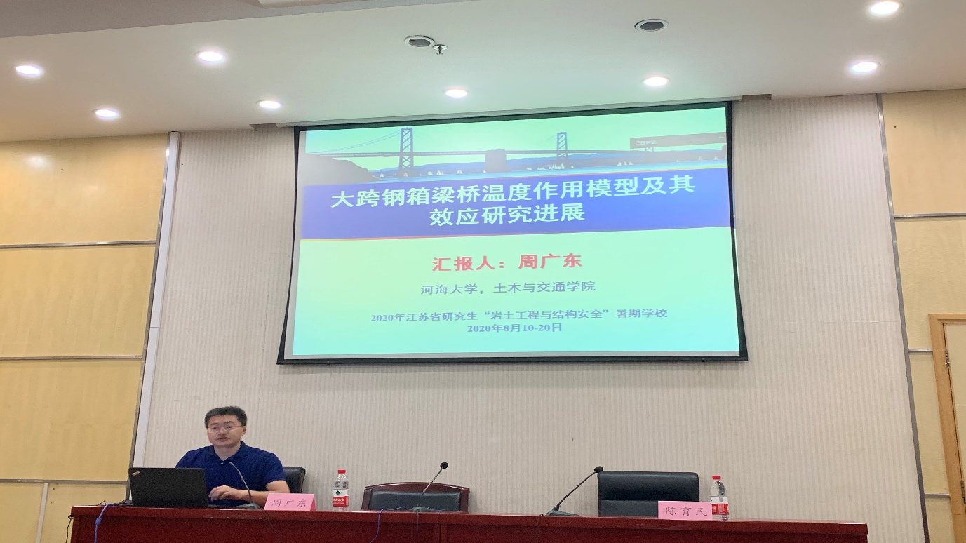 上午的首场授课专家是开云电竞网土木与交通学院周广东副教授,他的授课题目是《大跨钢箱梁桥温度作用模型及其效应研究进展》。周广东教授从大跨钢箱梁桥温度作用的研究背景及意义、三维温度作用模型的建立和案例分析、温度作用效应模型、主要结论和未来展望等四个方面进行展开。周教授的报告精彩绝伦,深深的吸引了众学子的热情互动,针对学员们提出的在分析温度作用对大跨钢箱梁桥位移影响时如何剔除非温度因素导致的位移等专业问题,周教授做出了耐心、详细的回答。