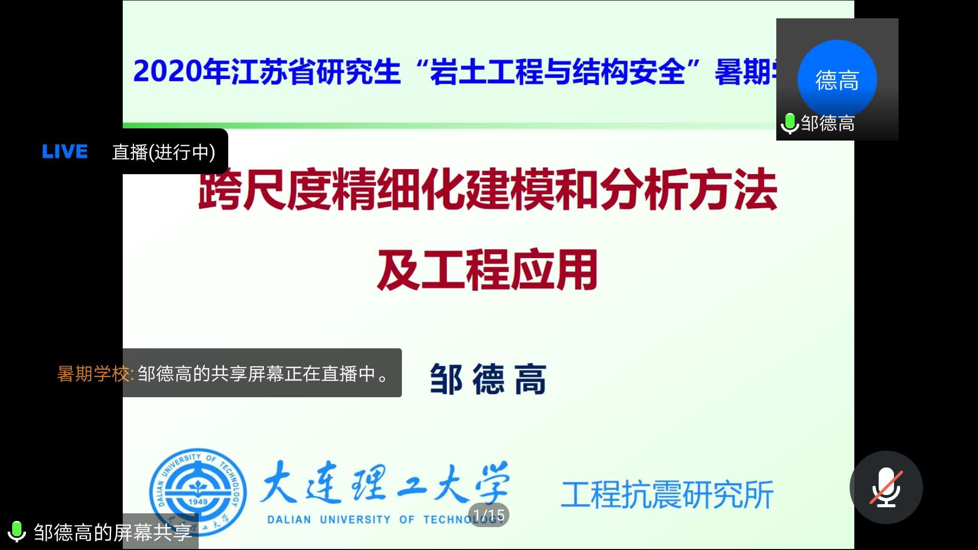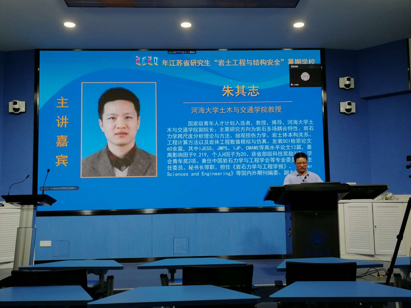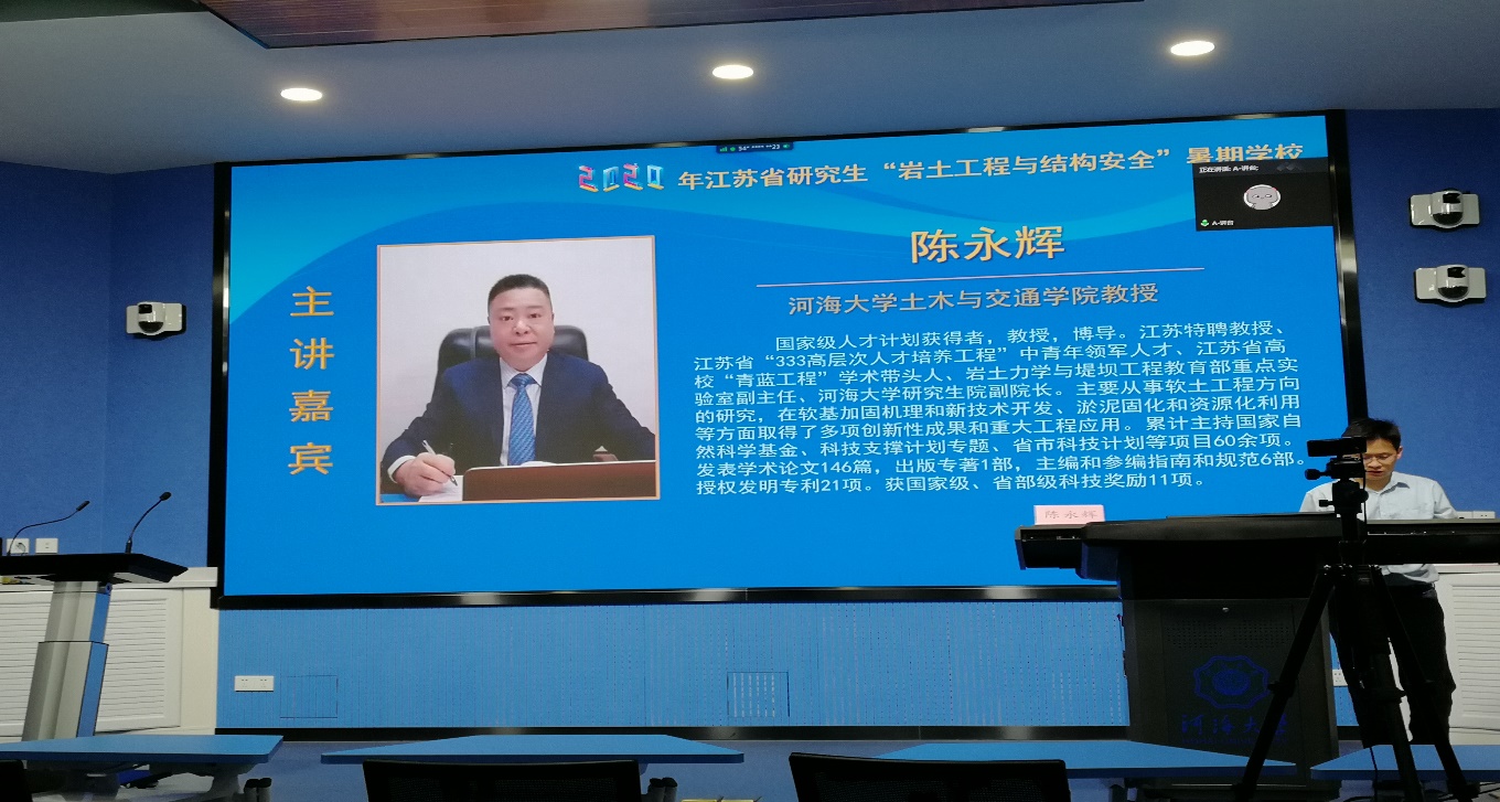 8月19日是2020年江苏省研究生“岩土工程与结构安全”暑期学校的第十天。当日的学术报告由开云电竞网土木与交通学院姬建教授主持。