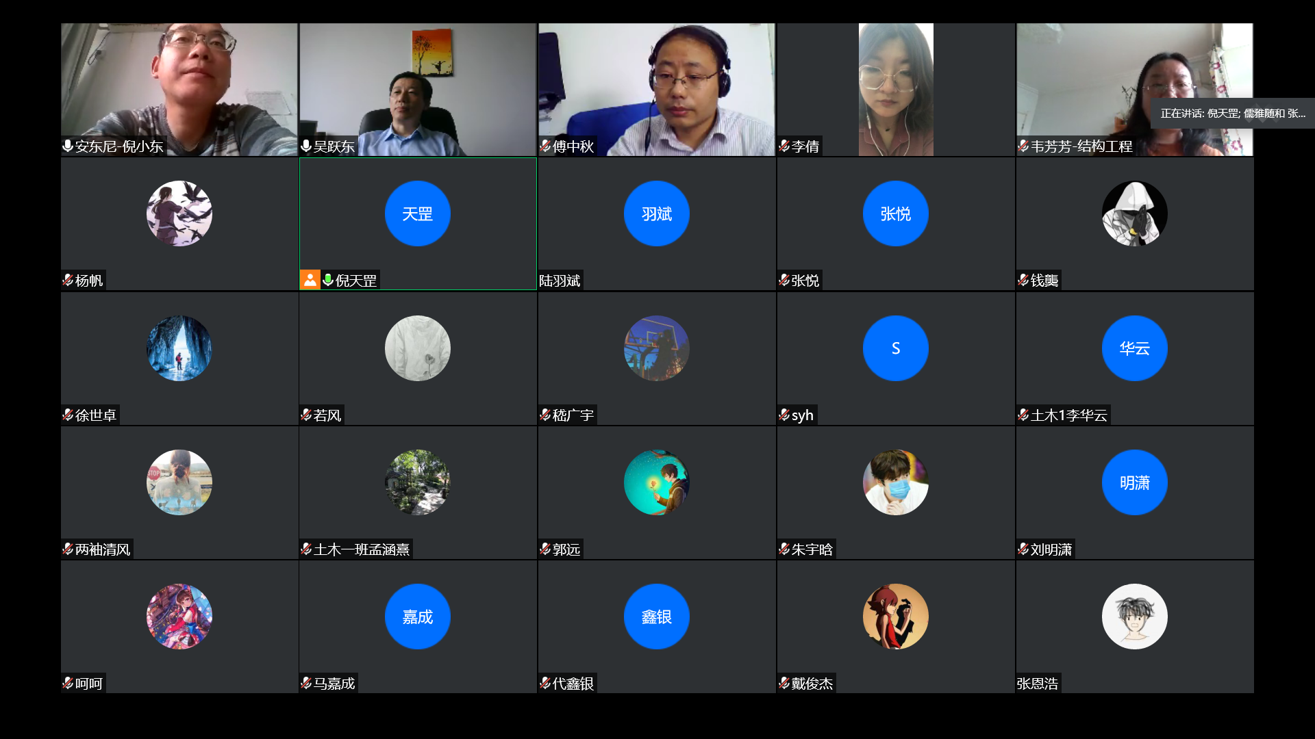2020年5月15日14:00,由土木与交通学院主办,学院本科生科协承办的2018级土木工程专业分流会于线上成功举办。本次分流会有幸邀请到岩土工程科学研究所吴跃东老师、结构工程研究所韦芳芳老师、桥梁工程研究所傅中秋老师以及隧道与地下工程研究所倪小东老师担任嘉宾,土木与交通学院2018级辅导员李倩老师、2018级土木专业全体同学以及2018级大禹土木全体同学聆听了此次分流会。