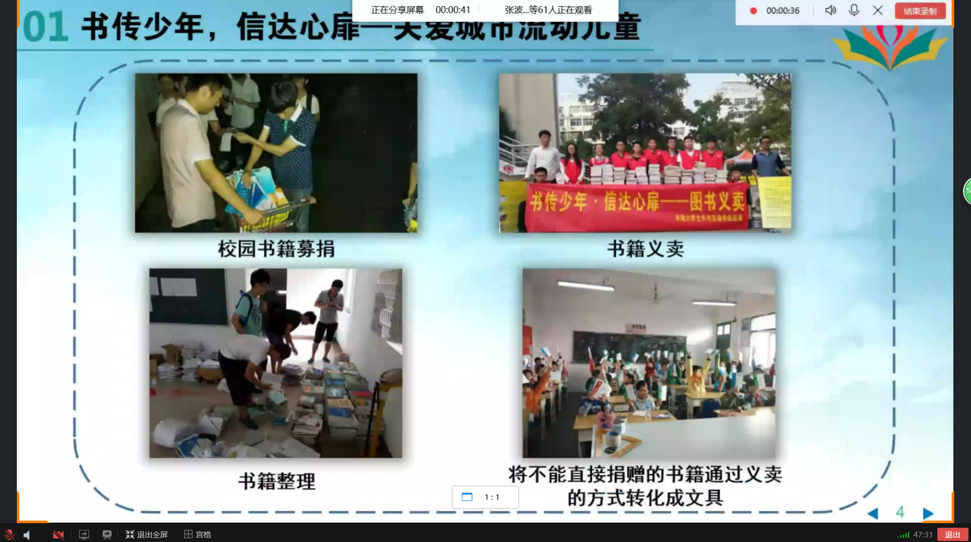 最后,黄业博同学结合自己志愿服务的经历,讲述了从事志愿事业给自己带来的变化:在服务他人的同时,提升了自己志愿服务的能力与素养。并且鼓励同学们多参加志愿公益活动,用脚步去丈量这片土地,用心去感受这份信仰。
