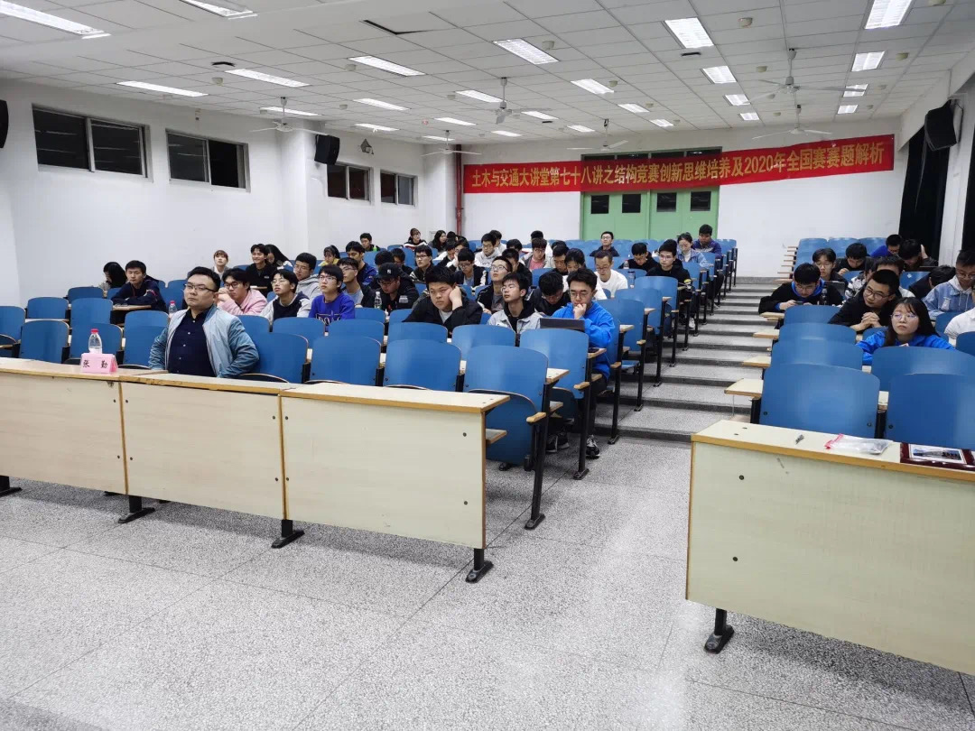 本次土木与交通大讲堂让同学们对结构竞赛创新思维的培养以及2020年全国大学生结构设计竞赛赛题有了更加深刻的认识,也明白了土木类的创新性人才需要学习能力、拼搏意识、坚强意志、健康体魄四个方面的共同支撑。相信同学们在聆听了本次讲座后能够收获经验,积极培养科研、创新精神,不断提升自己,争创佳绩!