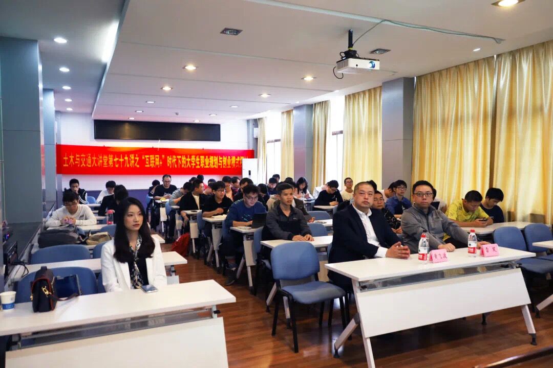 2020年11月18日15:30,由土木与交通学院主办,学院本科生学生会承办的土木与交通大讲堂第七十九讲之“‘互联网+’时代下的大学生职业规划与创业模式探讨”在开云电竞网西康路校区科学馆516举行。本次大讲堂有幸邀请到南京青梦家教育投资有限公司总经理黄飞渡作为主讲人,土木与交通学院2018和2019级部分学生聆听了本次讲座。