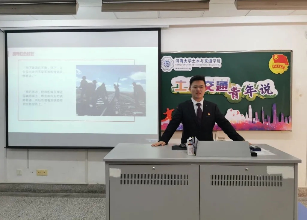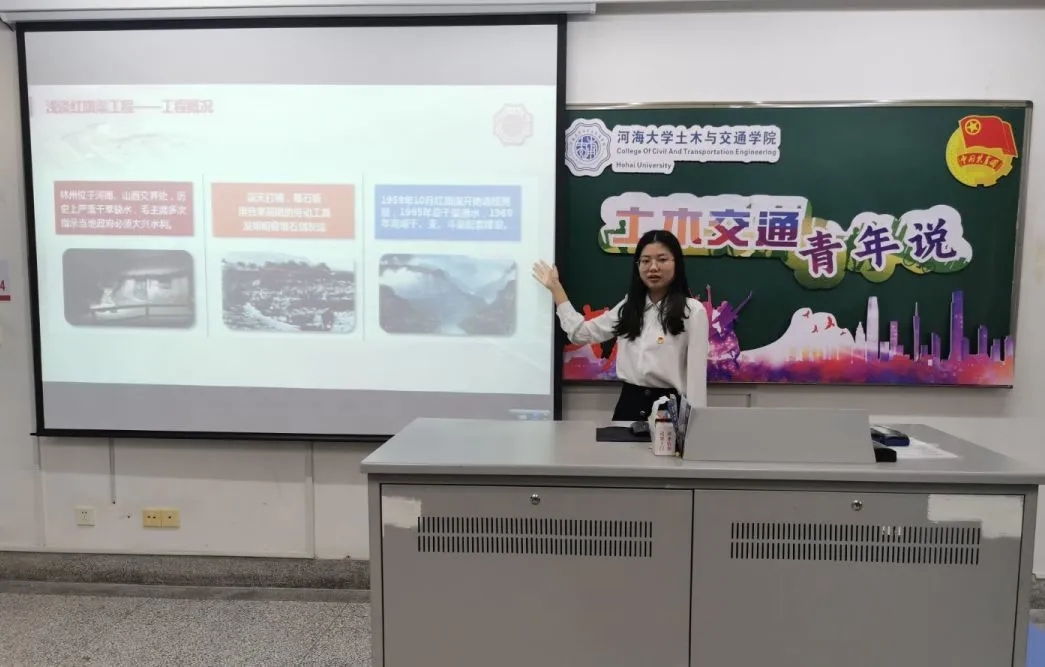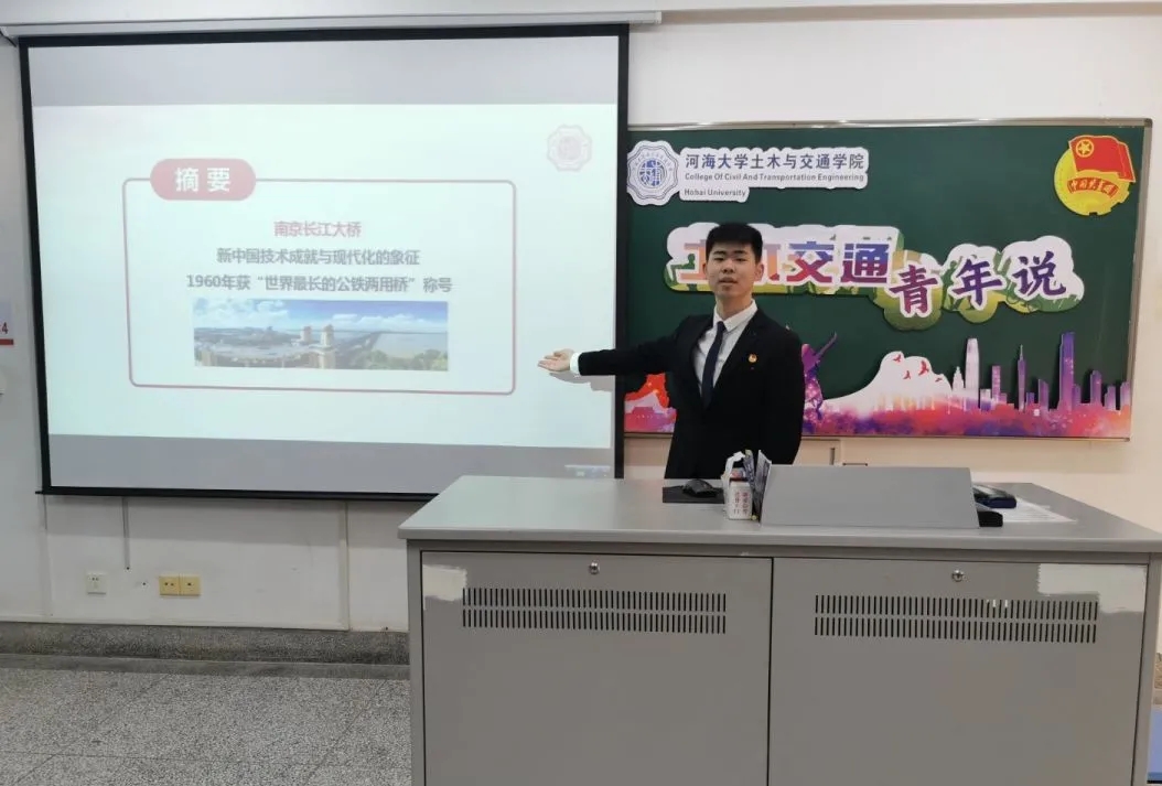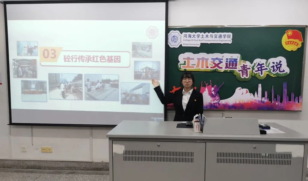 为贯彻落实习近平总书记在党史学习教育动员大会上的重要讲话精神,引导学院青年学生结合所学专业知识,探索大国工程中的红色精神,做新时代红色基因土木人,土木与交通学院于2021年3月23日在江宁校区致用楼203开展了以“聚焦大国工程,传承红色精神”为主题的“土木交通青年说”主讲人微课。五位2019级曾参与红色工程专项实践调研的同学为大家分享了他们的调研成果及感悟。学院团委书记2019级辅导员王璐老师及2019级、2020级部分本科生参与了本次活动。