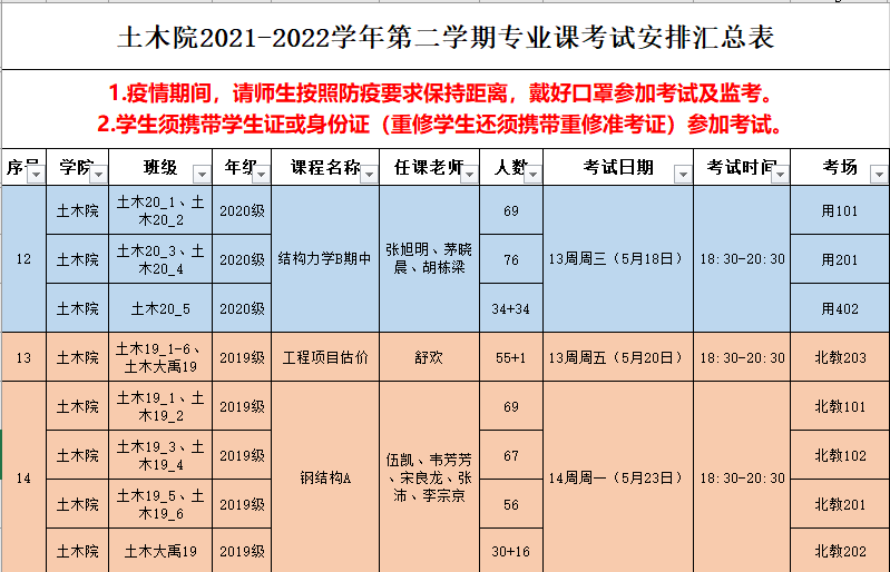 土木院2021-2022-2学期专业课考试安排(第二批)