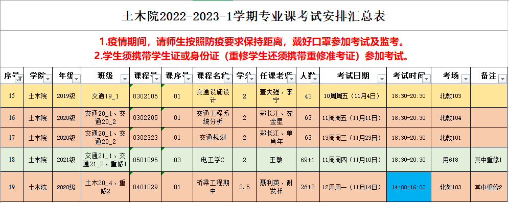 土木院2022-2023-1学期专业课考试安排(第二批)