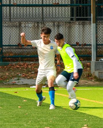 滴滴汗水,伴随着矫健的步伐,挥洒在绿茵场上。种种信念,凝集成坚定的目光,寄托于脚下的足球。严防死守,永不言弃,他们以飞扬灵动的身影诉说着这个秋天关于足球的故事。