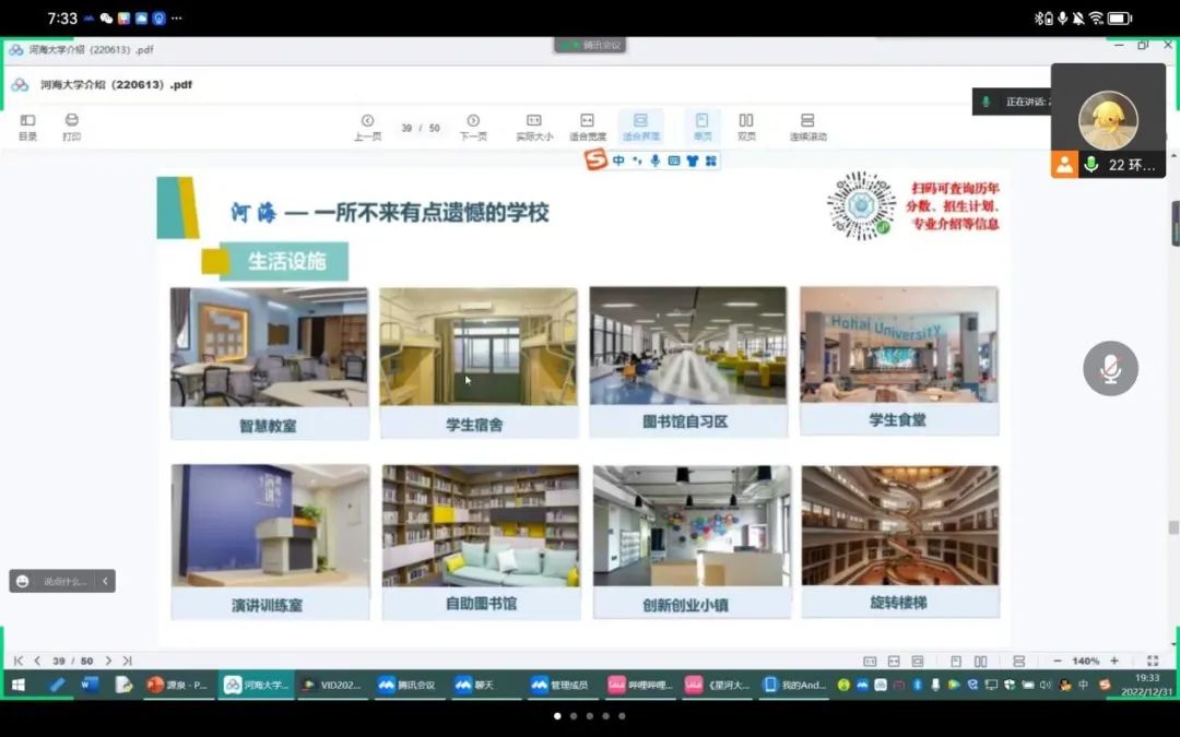 2022年12月31日,为感谢母校培育之恩,实践团队负责人土木院鲁乔丹与团队成员大禹院杨文橦、赵奕凡、外语院卢小旭、环境院鲍瑞以线上宣讲形式向高中母校开展“源泉工程”系列宣讲活动,宣传开云电竞网的优秀学风和教育培养理念,为高中学子们解答学习疑惑。