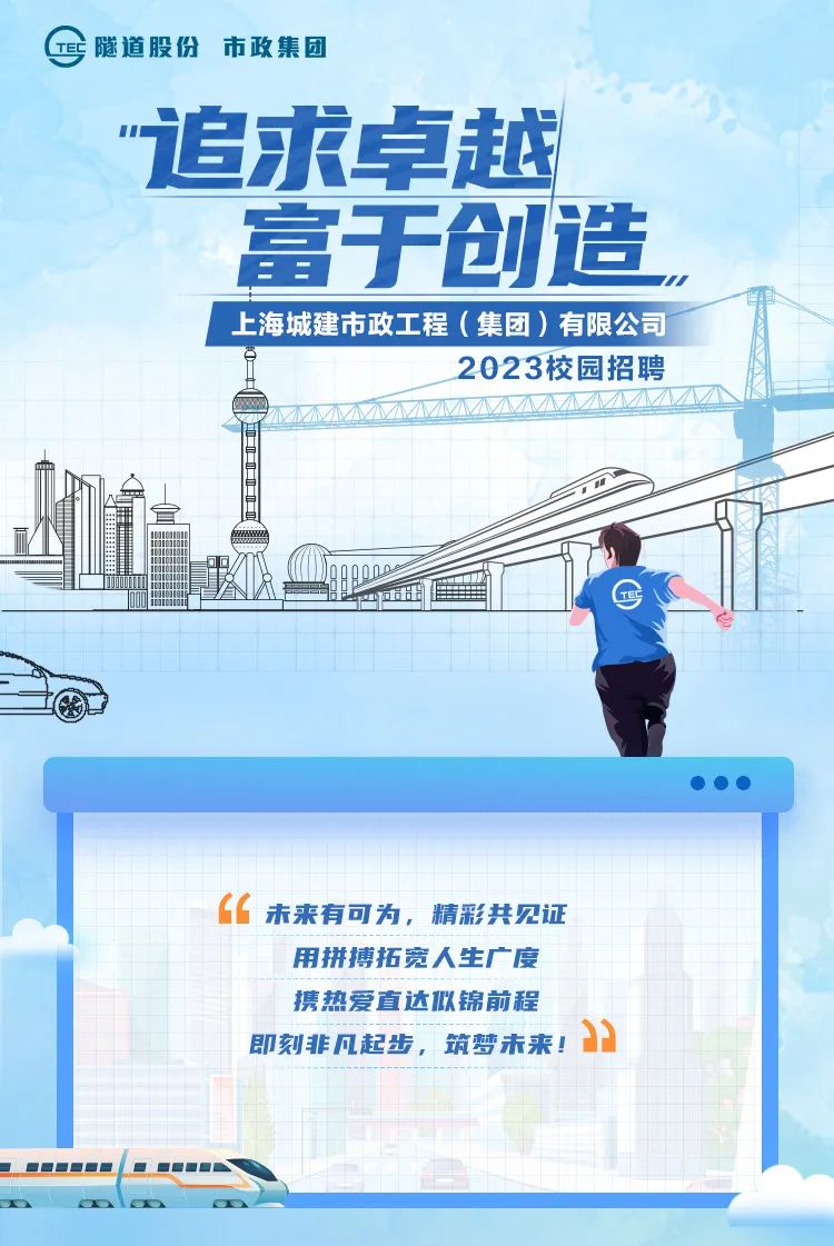 招|追求卓越,富于创造!上海城建市政工程(集团)有限公司2023年校园招聘正式启动