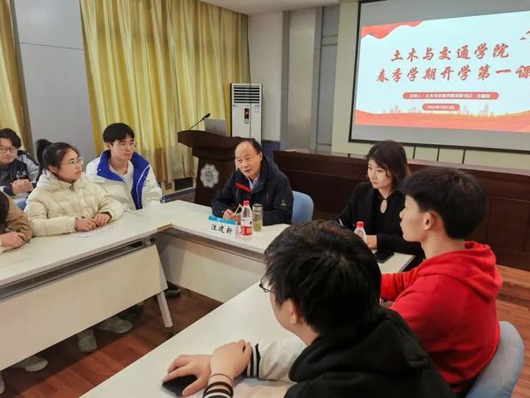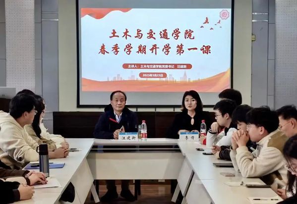 为深入学习贯彻党的二十大精神,落实立德树人根本任务,教育引导青年学生坚定理想信念、明确成长目标,以积极饱满的精神状态投入到新学期的学习生活当中,3月24日下午,土木与交通学院党委汪建新书记为学院学生骨干讲授了2023年春季学期开学第一课。本次活动由土木与交通学院团委副书记李倩老师主持,学院本科生、研究生学生骨干参加了本次活动。