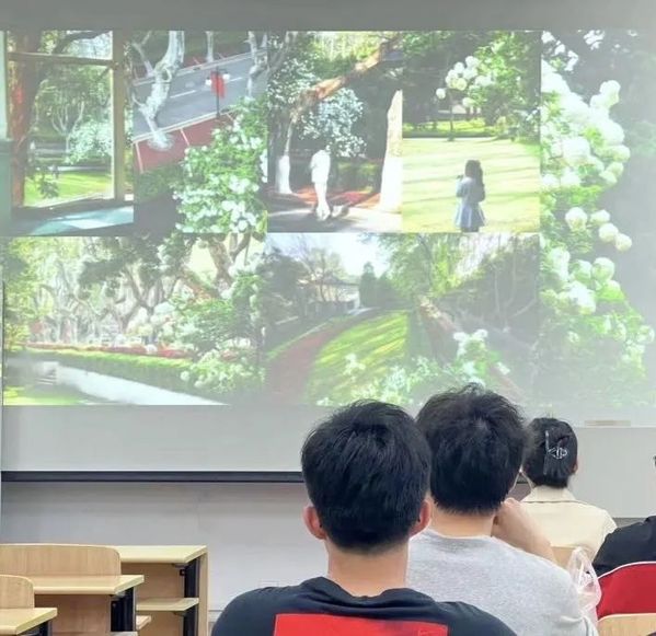 拍摄机位讲解中,唐梓昕同学以自己的作品为例,向同学们展示了不同机位选择对作品最终呈现效果产生的影响。