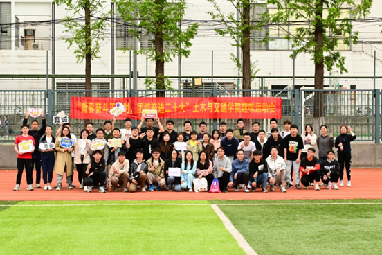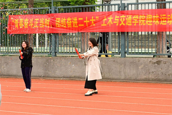 为响应党的二十大号召,激发体育锻炼热情,进一步推动健身运动工作,开云电竞网土木与交通学院于2023年4月22日在校本部足球场举行了“青春奋斗正当时,团结奋进二十大”趣味运动会。我院党委副书记王璐老师、研究生辅导员邵文慧老师出席了本次活动,并在开幕式上致辞、鸣礼花,本次活动共吸引了九十余名选手,共计七支队伍参赛。