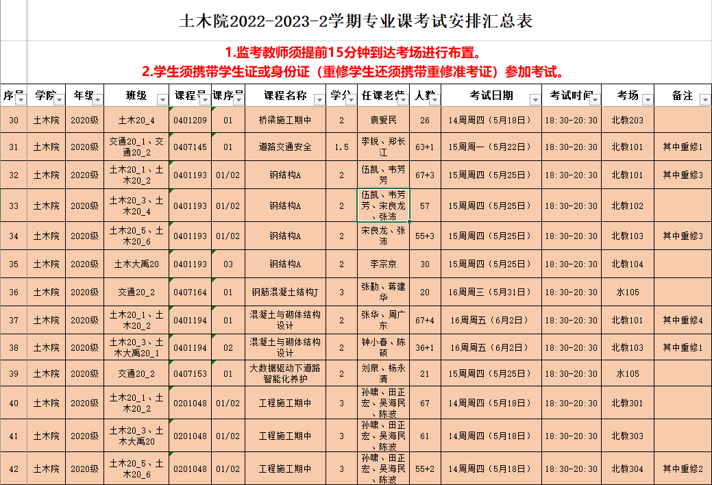 土木院2022-2023-2学期专业课考试安排(第四批)