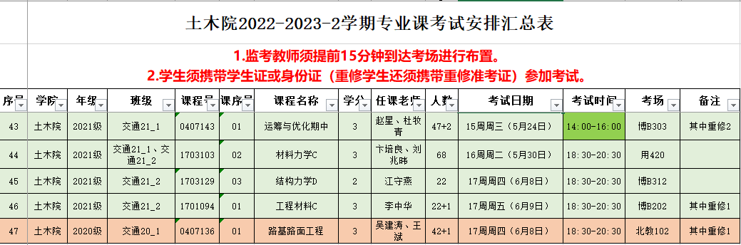土木院2022-2023-2学期专业课考试安排(第五批)