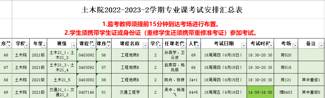 土木院2022-2023-2学期专业课考试安排(第八批)