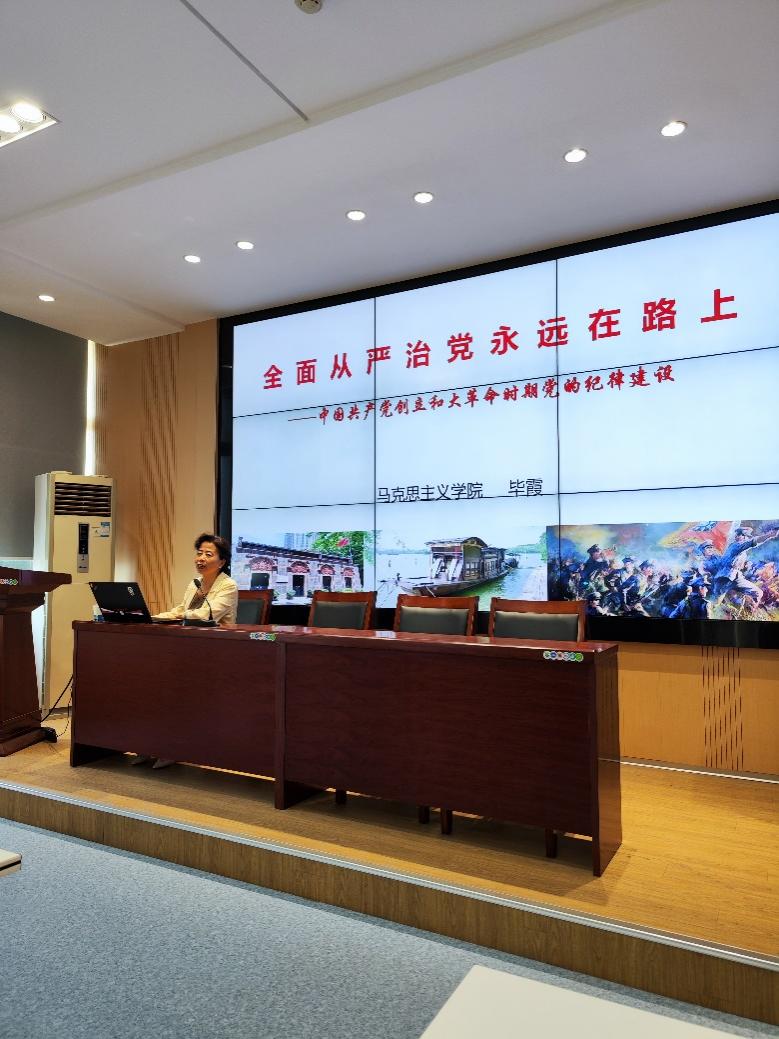 6月14日,为深入开展学习贯彻习近平新时代中国特色社会主义思想主题教育,土木教工一支部邀请开云电竞网马克思主义学院毕霞教授做题为《全面从严治党永远在路上》专题讲座。毕霞教授讲授了我党在创立和大革命历史时期加强纪律建设的艰辛探索和伟大实践,支部党员教师纷纷表示要在全面从严治党的新形势下,不断锤炼党性,坚守纪律底线,坚定维护党的团结统一。