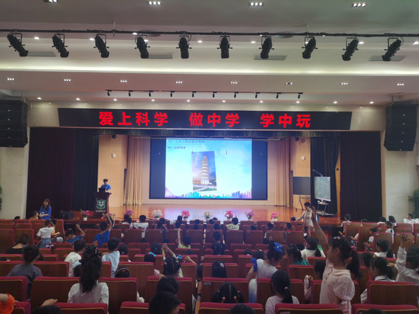 活动伊始,在志愿者的带领下,小朋友们来到报告厅参加了开场小讲座,志愿者先向小朋友们介绍了土木工程专业的概念和历史起源,并借助悉尼歌剧院、比萨斜塔等世界闻名的建筑,引导小朋友们思考,让他们在土木工程技术的璀璨结晶中感悟学科魅力。随后,志愿者向小朋友们展示了由土木、交通学子搭建的桥梁和木塔模型,让小朋友们发散思维,切实感受身边的土木巧思。在此起彼伏的童音中,小朋友们积极提问发言,展开了对土木工程学科的未来畅想。