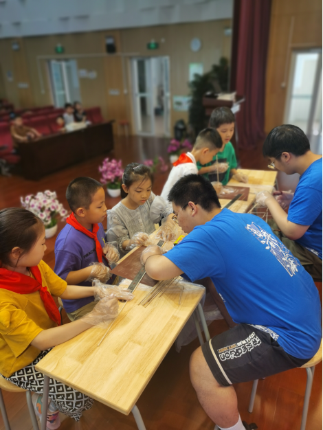 随后,为了让小朋友们将“知”与“行”结合起来,志愿者们带领他们现场进行了模型制作活动。从丈量长度到打磨材料,再到设计模型和搭建框架,志愿者们耐心指导,手把手教他们制作桥梁模型。在热烈欢快的氛围下,小朋友们卯足了劲,个个兴致高涨,很快就完成了自己的小小桥梁。