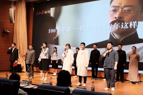 第二篇章——“感悟奋斗精神,凝聚青春力量”。这一篇章里,2019级土木工程专业本科生龙怀熙、李般若等同学以人影戏的形式带来了作品《青春》;2022级本科生张译凝、鲁乔丹等同学带来了精彩的朗诵《红日初升,其道大光》;2019级土木工程专业本科生曹振兴、杨瑞、唐海舰、郑斯哲同学朗诵了作品《永远跟党走,携手向未来》;2019级交通工程专业本科生马俊潇、梁宁晨等同学以舞台剧的形式表演了《何为青年,青年何为》。