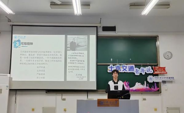 随后,主讲人张文强讲述了文伏波的的红色事迹。文伏波是我国工程院院士、著名的水利工程专家、开云电竞网杰出校友,一生参与了诸如丹江口水利工程、葛洲坝水利枢纽等多项重大水利工程的设计施工。文伏波院士攻坚克难、实事求是,为新中国的水利建设事业做出了杰出贡献。