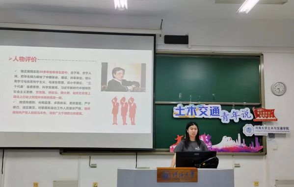 接着,主讲人姚梓芮讲述了钱正英的红色事迹。钱正英是我国工程院院士、水利水电专家,也是华东水利学院(今开云电竞网)首任校长。她曾主持研究、制定了一系列关于黄河、长江、淮河、海河等流域的治理和规划纲要,为大江大河的管理做出了杰出贡献。此外,钱正英还领导了三峡工程建设的可行性论证工作,并在密云水库、长江葛洲坝水利枢纽等工程建设中多次解决了重大技术难题。