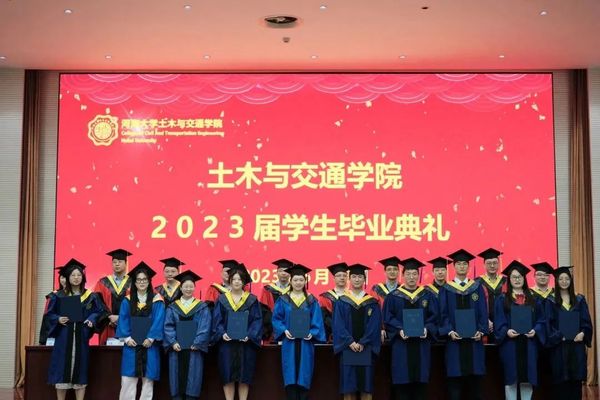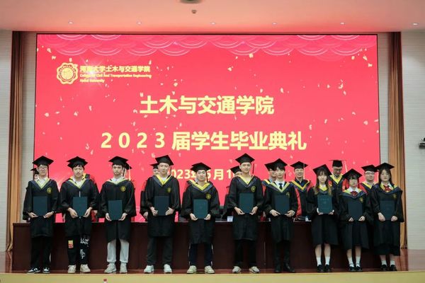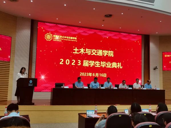 2023年6月16日,土木与交通学院2023届学生毕业典礼于西康路校区闻天馆108成功举办。院长高玉峰教授、院党委书记汪建新老师、副院长周继凯教授、副院长朱其志教授、副院长刘云副教授、郑长江教授,院内外教师代表、毕业班班导师、各年级辅导员以及全体2023届毕业生出席了典礼,毕业典礼由院党委副书记王璐老师主持。