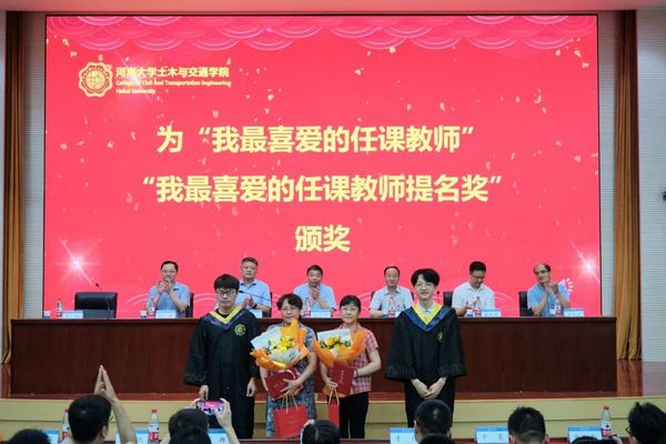 学生代表为第十一届“我最喜爱的任课教师和任课教师提名奖”获奖老师、“我最喜爱的班导师和班导师提名奖”获奖教师颁奖、献花,周继凯副院长为“建工结构奖助学金”获奖学生颁奖,朱其志副院长为企业导师颁发聘书,刘云副院长和周继凯副院长为毕业生代表赠送毕业礼物,学生代表为毕业班辅导员献花。