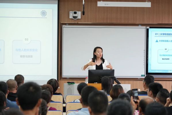 接着,王璐副书记对大学生活、课程学习情况及新生可能会面临的心理困惑和问题做了详细的介绍。