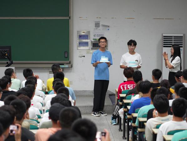 成长不期而遇,生日如期而至。开学前,学院筛选了所有新生的信息,发现2023级两名学生在报到当天过十八岁生日,于是在年级大会特意为他们准备了惊喜生日蛋糕,全体2023级新生为他们齐唱生日歌,送上最真挚的祝福。