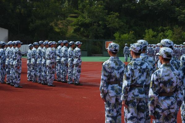 在烈日下站着挺拔军姿,在余晖中唱着铿锵军歌。这是我们新的校园生活中难以忘怀的场景。