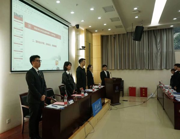 大会伊始,全体人员起立奏唱国歌。学院团委副书记李倩老师首先代表学院团委致辞。首先,李倩老师向大会的顺利召开表示热烈的祝贺。接着她总结了我院学生会过去一年所取得的卓越成绩与突出贡献,并希望通过本次大会选出优秀的组织成员继续为同学们服务。她希望,同学们要勇担时代重任,将思想引领工作落在实处;牢记服务宗旨,服务学院学子成长成才;勇于自我革命,持续深化学生会组织改革。时代召唤青年,青年创造未来。她也寄语学院广大青年能够牢记党的教诲,立志民族复兴,挺膺担当、勇挑重担、冲锋在前,以实际行动和优异成绩为全面建设社会主义现代化国家、全面推进中华民族伟大复兴贡献青春力量!