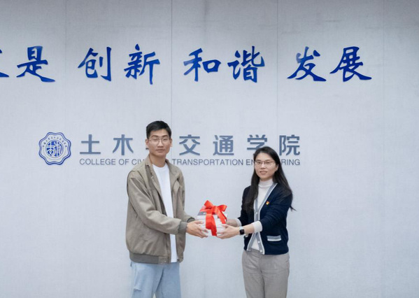 汤鸣鸿副部长对土木院本科生二支部的建设情况以及共建模式给予了肯定,对进一步组织开展好共建活动、加强师生互动交流,提出了建议。她指出,青年党员同志作为学生中的优秀代表要珍惜自己的党员身份,在学生群体之间做好先锋模范带头作用,在个人职业生涯规划的问题上要提前看、早规划,为自己的发展做好准备。汤鸣鸿副部长还代表人事处党支部向土木院本科生二支部赠送红色书籍,勉励同学们保持读书的好习惯,坚持理论学习与实践相统一,积极担当、勇于作为。