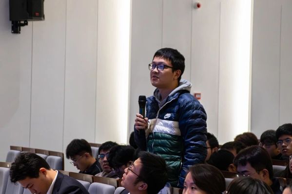 结合企业宣传片,张忠阳书记介绍了中建八局文旅博览公司的发展历程与基本情况,以便增进同学们对公司的整体认知。在互动交流环节,同学们就土木交叉学科在实践中的运用、未来工作地点的稳定性、就业岗位的未来晋升渠道等进行提问。张忠阳书记结合自身经历一一解答,并就“土木行业未来就业前景”等话题与同学们开展深入交流,为对未来发展感到迷茫的同学们指明前进方向,鼓励大家乐观看待专业发展前景,好好学习必有所作为。方星和姚家明学长也结合社会现状和工作经验分析当前就业形势,分享了具体的求职建议,这给同学们带来了很大的启示。
