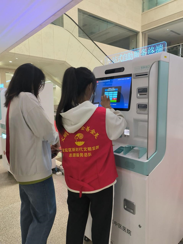 2023年10月,土木与交通学院团委组织土木与交通学院22级本科生志愿者,在常州市金坛中医院举办了以“导志愿之路,医患者之心”为主题的志愿服务活动。在医院值班的志愿服务负责人对志愿者们进行了简短的培训后,将志愿者们安排到医院自助服务机、急诊服务台、放射科导诊台、检查科签到台等区域进行志愿服务。