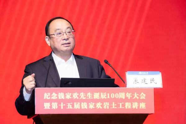 纪念大会结束后,举行了第十五届钱家欢岩土工程讲座,张建民院士作题为《城市浅埋结构非极限状态地震土压力评价》的主题报告。