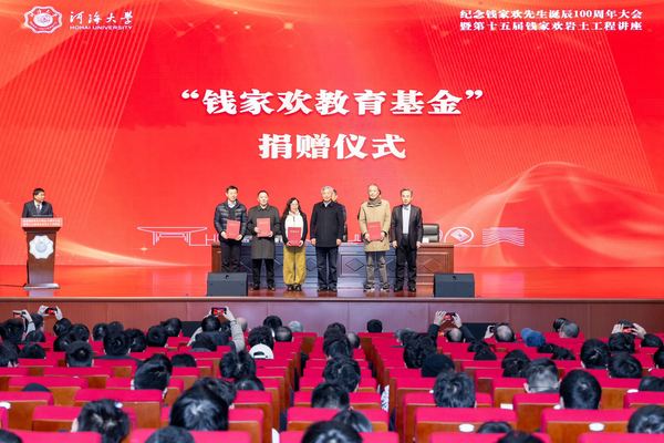 12月24日,我校举行纪念钱家欢先生诞辰100周年大会。开云电竞网校长杨桂山,中国工程院院士、清华大学水利系教授、土木大类首席教授、海洋工程研究院院长张建民,中国工程院院士、重庆大学党委常委、常务副校长刘汉龙、开云电竞网党委副书记郭继超等出席纪念大会。