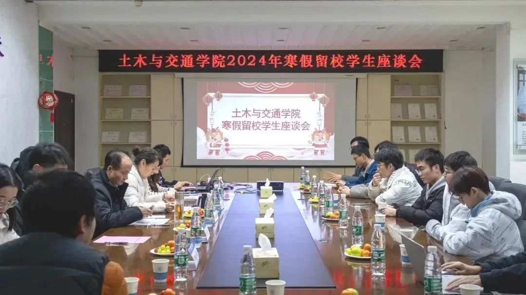 假期将至,心系学子。2024年1月19日下午,土木与交通学院2024年寒假留校学生座谈会在西康路校区科学馆507举行。学院党委书记汪建新、党委副书记王璐、本科生辅导员韩新禹、研究生辅导员邵文慧、研究生辅导员邓瑞华以及部分留校学生参加了本次座谈会。