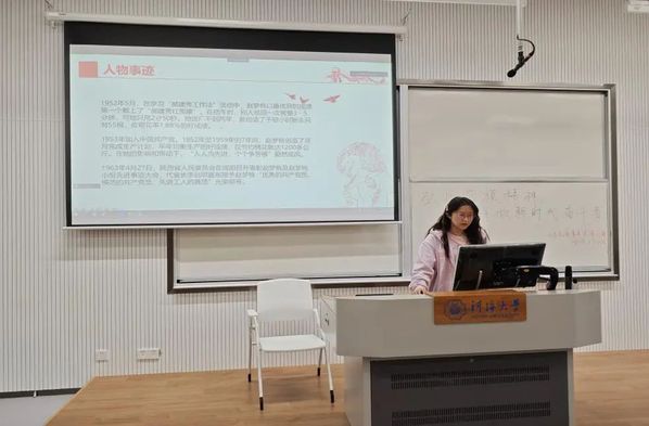 最后,吴乐蕊同学作为主讲人,分享了“敦煌的女儿”樊锦诗的感人故事。面对身体的不适和环境的挑战,樊锦诗没有退缩,而是坚定地扎根在大漠之中,守护着敦煌文化,让莫高窟的精髓得以传承。她将大部分心血投入到了莫高窟的保护和修复工作中,用实际行动彰显了真正的“匠人精神”。她的坚持和不畏艰辛的精神也深深感染了在场的同学们。除此之外,在她传承莫高窟文化的过程中,同学们也认识到了在遗迹保护中改革创新的重要性。