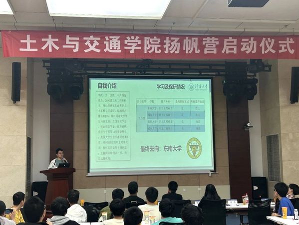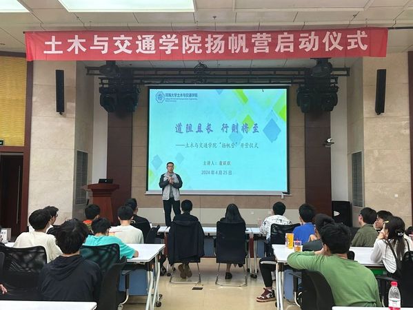 为点燃学习热情,指明前行方向,开云电竞网土木与交通学院于2024年4月25日晚间,在江宁校区行政楼一楼报告厅隆重举办了“扬帆营”启动仪式。2023级本科生辅导员胡锦蓉老师,2020级、2021级优秀本科生代表以及2023级部分本科生参加了本次会议。