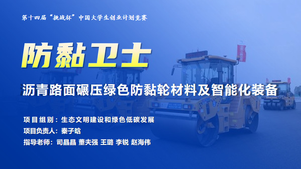 5月17日-19日,第十四届“挑战杯”中国大学生创业计划竞赛江苏省选拔赛决赛在南京医科大学成功举办。在司晶晶、董夫强、王璐、李锐、赵海伟五位老师的指导下,由我院2021级交通工程专业本科生秦子晗、唐亚琪,2022级本科生鲁乔丹、闫彤,2023级硕士研究生郭翊蓁,2021级硕士研究生邵晓阳、王诗雨,2019级博士研究生王俊彦以及经济与金融学院2023级理论经济学专业硕士研究生孔雨迪等同学共同完成的作品《防黏卫士——沥青路面碾压绿色防黏轮材料及智能化装备》获江苏省金奖,并入围全国决赛。