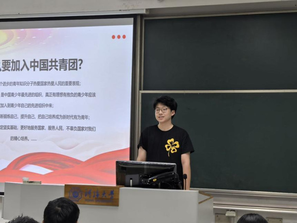 首先,学院团委主席团成员吴玺含同学结合自身开展团学工作的实际情况开展入团启蒙教育。吴玺含同学以“你为什么要加入中国共青团”破题,从认识共青团、入团基本条件、发展团员工作流程、相关材料填写以及注意事项五个方面详细介绍入团的考核要求和流程规范,鼓励同学们在日常学习工作和生活中严格要求自己,争取早日成为一名光荣的共青团员。