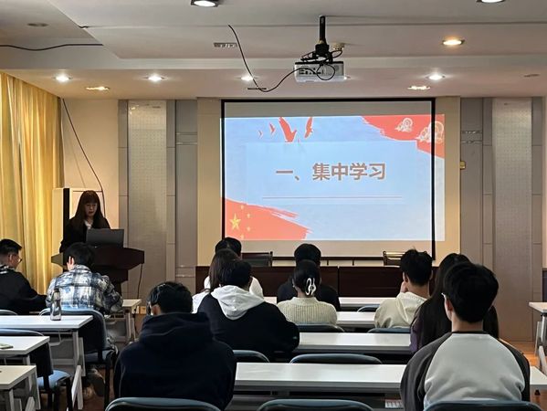 首先,砼研新语社的社长华翊璇同学带领大家集中学习了“习近平:在庆祝中华人民共和国成立75周年招待会上的讲话”。会议上,习近平总书记强调“经过75年的艰苦奋斗,中国式现代化已经展开壮美画卷并呈现出无比光明灿烂的前景。同时,前进道路不可能一马平川,必定会有艰难险阻,可能遇到风高浪急甚至惊涛骇浪的重大考验。我们要居安思危、未雨绸缪,紧紧依靠全党全军全国各族人民,坚决战胜一切不确定难预料的风险挑战。”