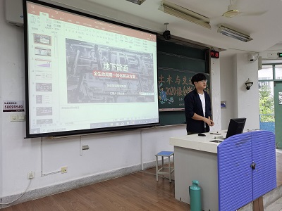 接着,雷兰清同学向大家讲解了自己的创新创业课题“地下管道—全生命周期一体化解决方案”。他从管道问题的危害出发,通过研究提出了组合式的解决方案,向同学们展示了核心技术动画以及该课题的实践案例和服务对象,充分体现了课题的社会效益。雷兰清同学向大家提出了三点建议:第一,要注重培养自己的兴趣,从兴趣出发,选择适合自己的研究课题;第二,要多注意观察社会的痛点和发展趋势,从中发现研究方向;第三,挑选适合自己的导师,有助科研的顺利进行。