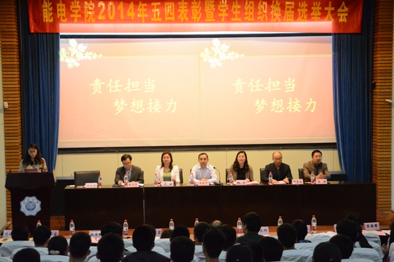 5月9日,我院召开了以“责任担当,梦想接力”为主题的2014年“五四”表彰大会。校党委王济干副书记、校团委吴红书记、能电院党委魏萍书记、学生处魏有兴副处长、能电院李志华副院长、能电院吴峰副院长出席了本次大会,同时,到会的还有我院十多位优秀班导师代表,水电学院、土木学院、计信学院、理学院、外国语学院的团委书记,我院全体辅导员老师,校科协、校学生会、校传媒中心的各位代表,以及兄弟学院的学生组织代表。会议由能电院党委副书记汤鸣鸿主持。