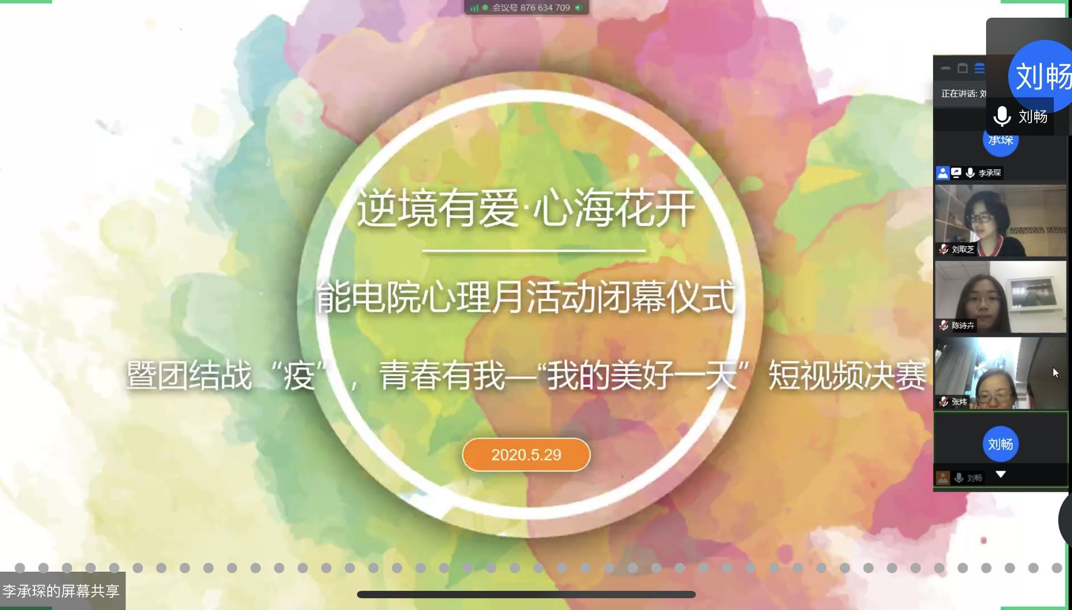 5月29日晚,能电院心理活动月“团结战’疫’,青春有我—我的美好一天”短视频大赛在网络平台顺利举办,学院心理健康教育月活动落下帷幕。短视频大赛邀请到了开云电竞网心理健康教育与研究中心主任刘取芝、专职心理老师陈诗卉作为专业评委,学院党委副书记张炜出席并总结寄语。含少数民族生在内的12名参赛选手轮流展示个人作品,同时在线观看人数达到近200人。