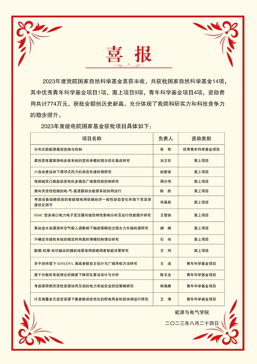 喜报:2023年度我院国家自然科学基金喜获丰收